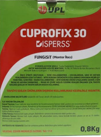 ETKEN MADDE ADI: %30 Mancozeb + %12 Metalik bakıra eşdeğer bordo bulamacı